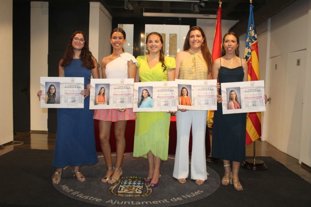 Nules celebró el pasado viernes el acto de Proclamación de la nueva Reina de la Vila 2023, Paula Bruno Gutiérrez, y de las damas de la Corte de Honor, Balma González Portalés, Musa de la Música; Lucía Merino Purificación, dama de Sant Xotxim; Carmen Lengua González, dama de Sant Joan; y Teresa Vicent Llanes, dama de la Caixa Rural Sant Josep.