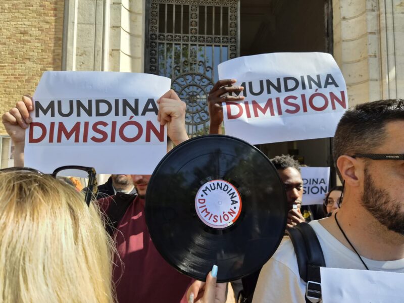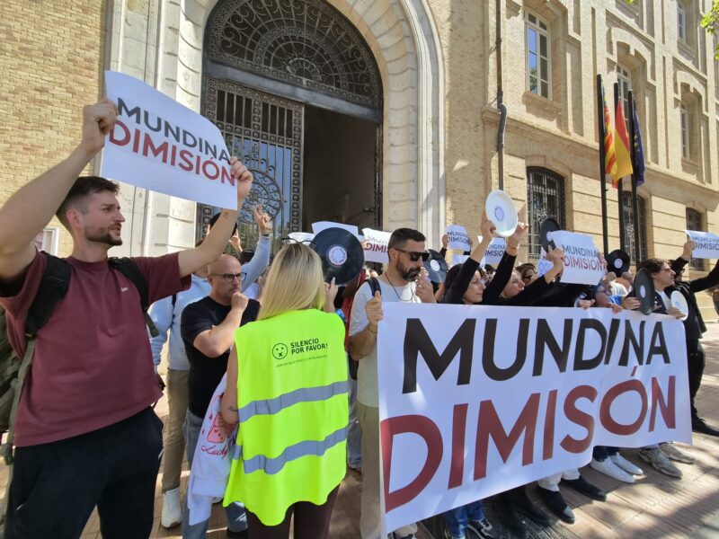 La protesta, convocada por la Asociación Empresarial de Discotecas de Valencia y la Asociación por una Hostelería Responsable en Russafa, se ha desarrollado con una pancarta y la consigna ‘Mundina dimisión’. El sector acusa al edil de haber convertido al barrio en “el pararrayos y chivo expiatorio” de sus “políticas fallidas” y de su “incompetencia” en la lucha contra el ruido en la ciudad.
