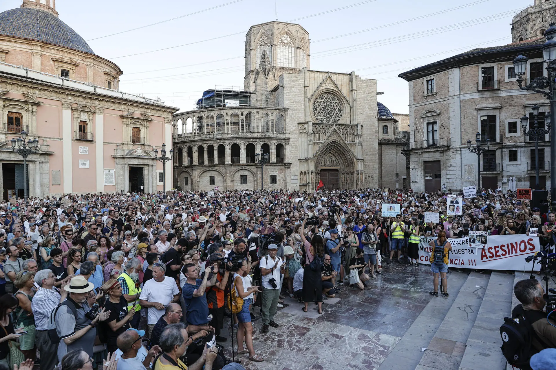 La protesta ha finalizado en la plaza de la Virgen. Allí se ha reivindicado que «la lucha por la verdad y la justicia no hace vacaciones». También se ha recordado a las 228 víctimas mortales de la dana, a los dos trabajadores que murieron después en las tareas de limpieza. Asimismo, se mencionó a la bebé de una fallecida embarazada de ocho meses que podría ser reconocida como una víctima más.