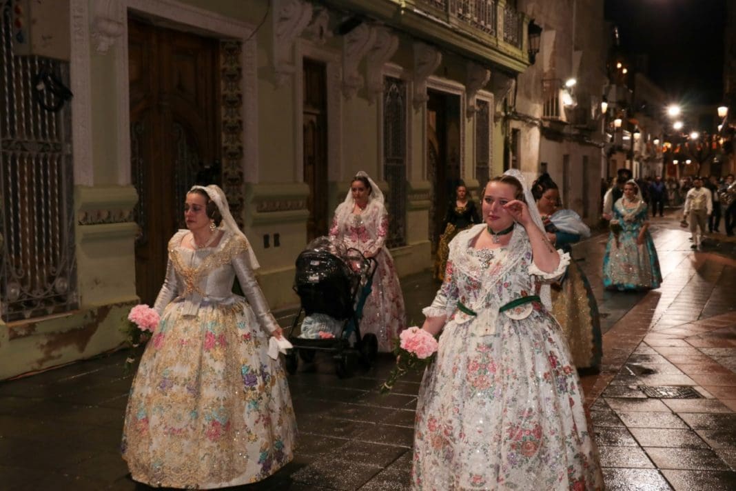 Cientos de falleros y falleras participan en la Ofrenda de Torrent