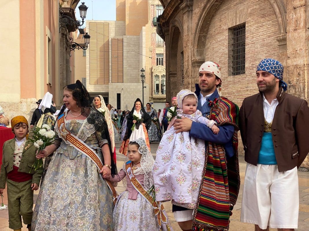 En este enclave y ante el gran ‘cadafal’ que representa la imagen de la patrona con el Niño Jesús en brazos, las falleras de todas las comisiones integradas en la Junta Central Fallera (JCF) de València –las de esta ciudad y las de las poblaciones próximas de Burjassot, Quart de Poblet, Xirivella y Mislata– depositarán sus ramos. Junto a las falleras, tanto mayores como infantiles, desfilarán los falleros, también mayores y pequeños, de cada comisión.