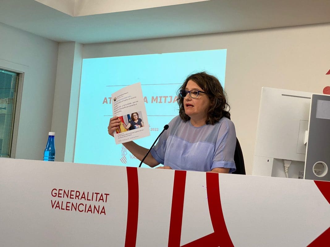 «Esto es una cuestión política, esta gente quiere ganar y no puede ganar, es una cuestión política de defensa democrática. Si me lo hacen a mí, se lo podrán hacer a cualquiera” ha señalado Oltra, mientras ha enseñado y leído a la prensa los tweets que publicó ayer el dirigente de España 2000 y abogado de la menor tutelada y que dice «Al final te lleve al huerto sin tocarte un pelo. Me supo mal, y no lo olvide, que me llevarás al banquillo por ponerte el Viva España«.