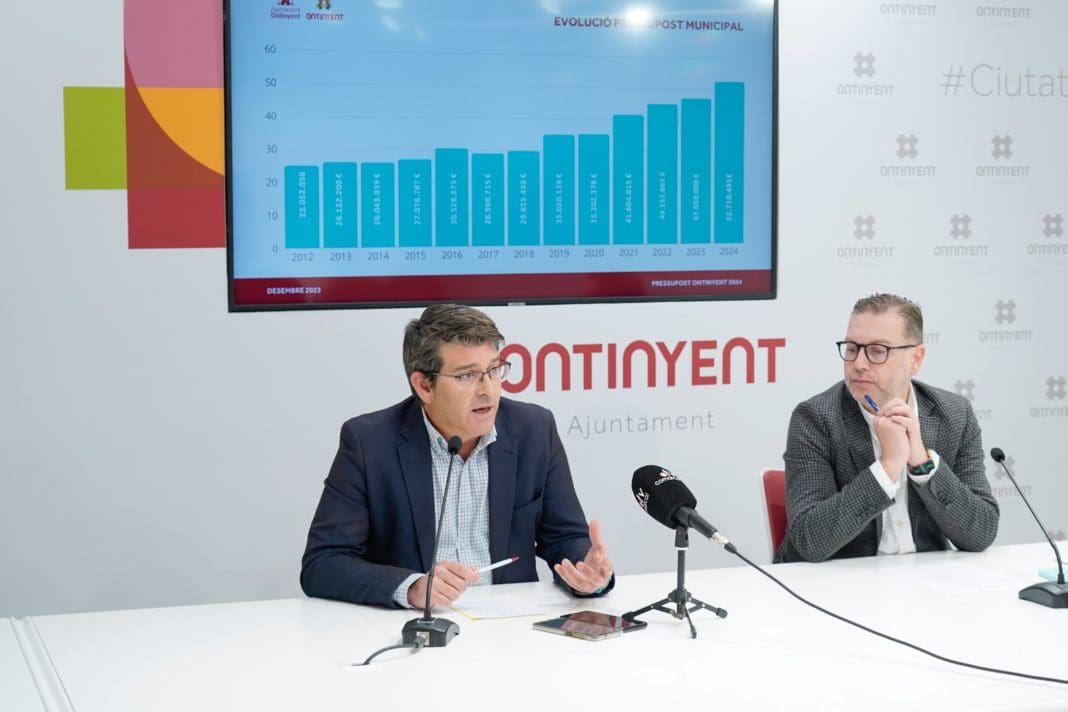 «El presupuesto más elevado de la historia de nuestra ciudad, más de 52 millones de euros para continuar haciendo de Ontinyent una ciudad más innovadora, igualitaria y sostenible». Así presentaban el alcalde, Jorge Rodríguez, y el edil de Hacienda, Juan Pablo Úbeda, el proyecto de presupuesto municipal para 2024, que será sometido a votación plenaria este mes.