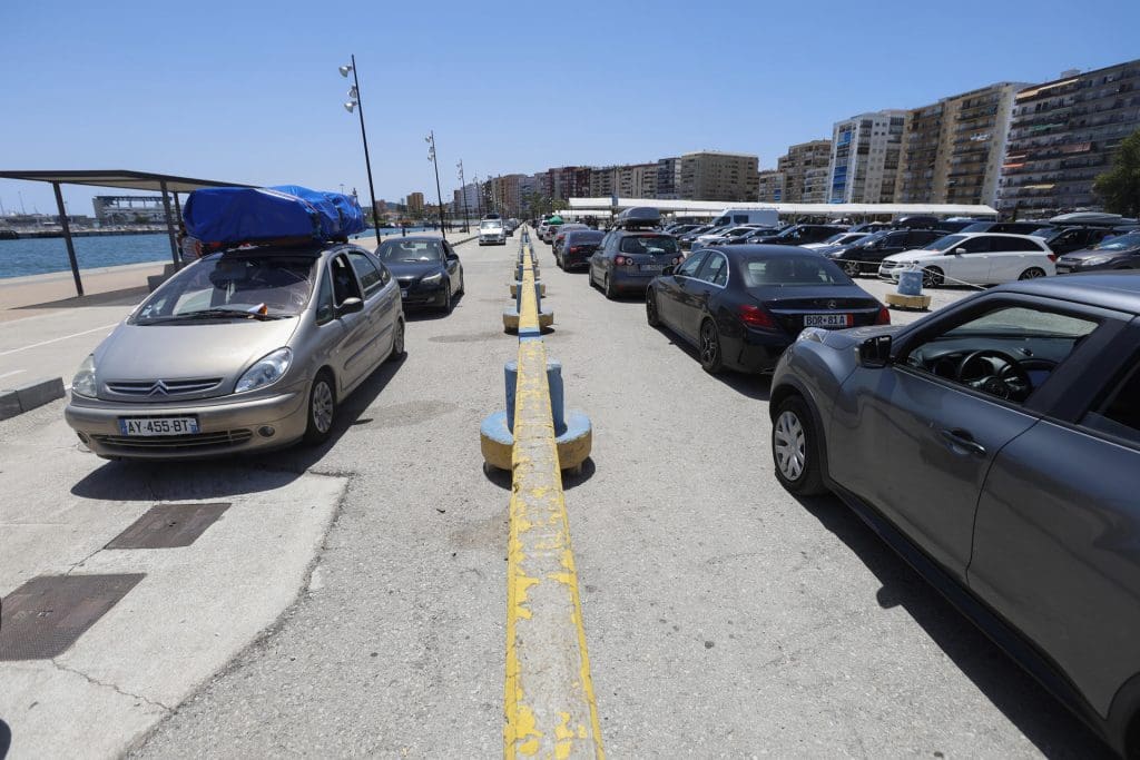 Colas de vehículos en la zona del llano amarillo en el puerto de Algeciras, esperando su turno para entrar en la zona de preembarque y embarque dentro de la Operación Paso del Estrecho. EFE/A.Carrasco Ragel/Archivo