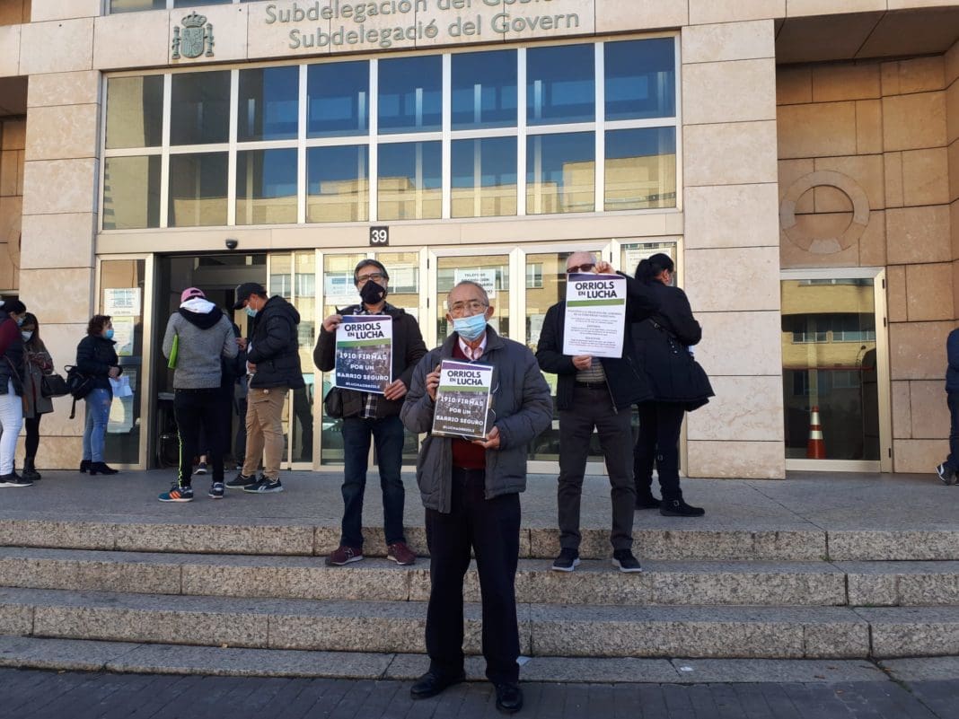 La plataforma vecinal Orriols en Lucha ha presentado este miércoles las firmas recogidas en la Subdelegación del Gobierno de España