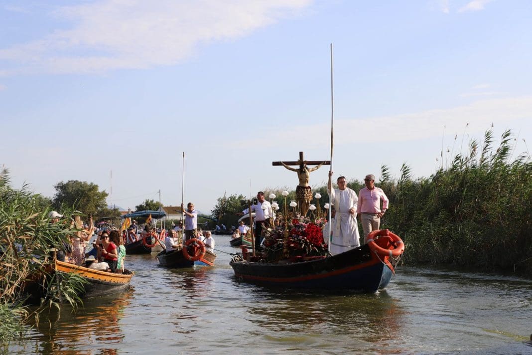 La pedanía valenciana de El Palmar celebra esta semana la festividad del Santísimo Cristo de la Salud con los actos tradicionales como la romería en el lago de la Albufera que no se realizaba desde 2019 por la pandemia.