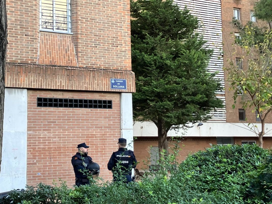 En la calle Sollana se han concentrado miembros de la PAH para «intentar paralizarlo y hacer un llamamiento a la responsabilidad, porque la vivienda tiene que ser un tema de estrategia política y debe haber un planteamiento común de defensa de las personas».