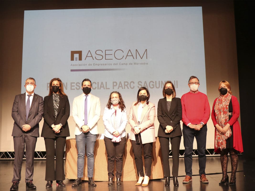 En el acto organizado por la Asociación de Empresarios del Camp de Morvedre (ASECAM) ha participado el alcalde de Sagunto, Darío Moreno, junto con la presidenta de ASECAM, Cristina Plumed; el subdirector general de Movilidad, Josep Llin; la directora general de Obras públicas, Transporte y Movilidad Sostenible, Roser Obrer y los miembros de Parque Empresarial Sagunto Teresa Ventura, Vicente J. García Nebot y Cristina Salazar.