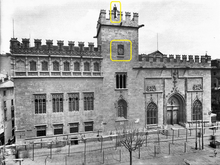 D’aquesta manera, la vella esfera del rellotge de la Llotja va ser substituïda per una altra de nova, alhora que el seu vell mecanisme quedava en desús. Les campanes heretades de la Llotja, però, seguien complint la seua funció de tocar els quarts i les hores amb el mecanisme elèctric del nou rellotge.