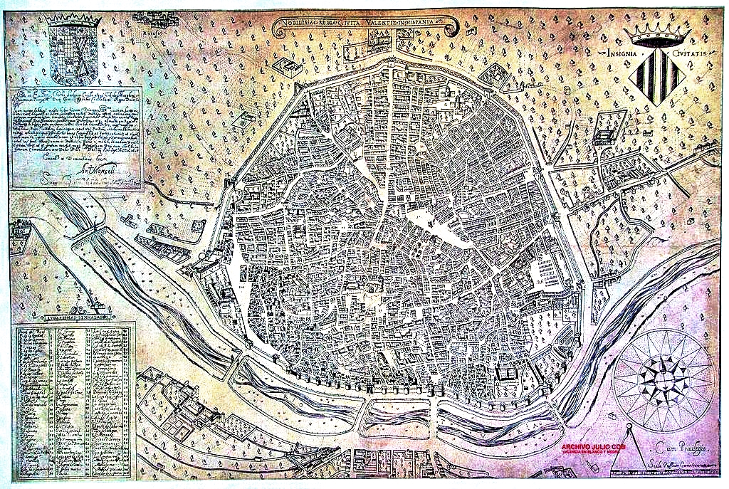 A continuació podeu veure un mapa amb la ubicació i els noms d’aqiests dotze portals de la muralla tardomedieval de València: