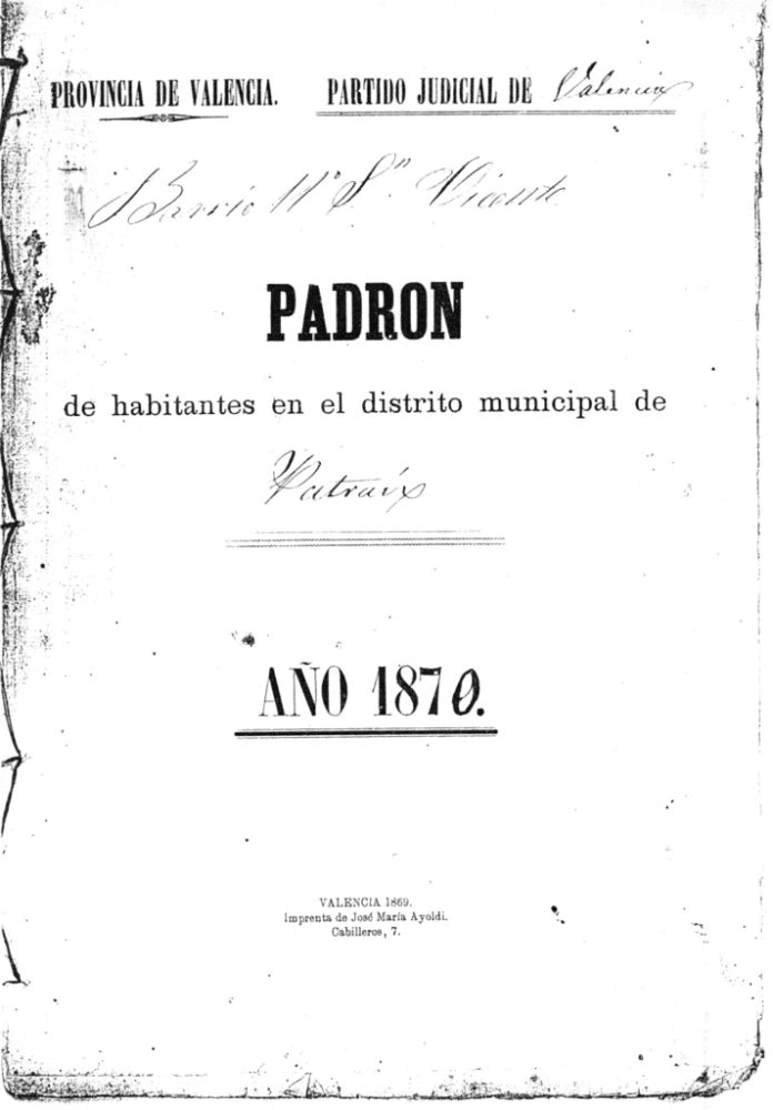 Era l’any 1870, any en què el barri Patraix de València, després d’unes dècades d’haver esdevingut municipi independent, s’incorporava com a un nou barri a València. Al Padró del nou districte municipal de Patraix d’aquell any, en què apareixien uns cent veïns, hi figurava un matrimoni format per Pascual Sancho Ros i Pascuala Medina, i els seus tres fills més menuts, José, Carmela i Alejandro.