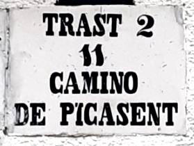 L’esmentada retolació ceràmica que podem trobar a Patraix diu: “TRAST 2 11 CAMINO DE PICASENT“. Podeu veure-la a continuació: