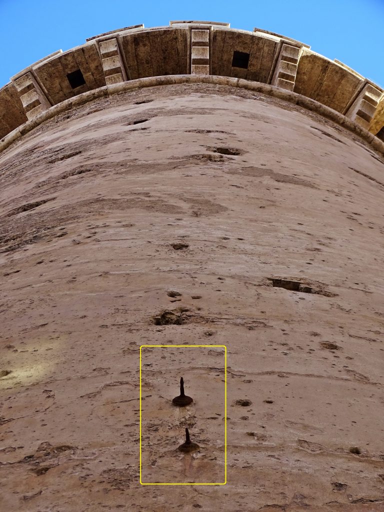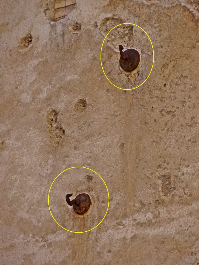 Si observem a hores d’ara amb deteniment les façanes exteriors del portal, podrem observar els jocs de les esmentades rosasses, la forma de les quals és la d’uns ganxos metàl·lics incrustats a les seues parets. Després d’una mirada atenta, podrem trobar-ne fins a 15. En la fotografia de capçalera de l’article podreu veure algunes d’elles, així com en aquestes fotografies de a continuació: