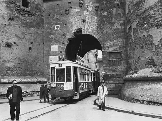 Però, curiosament, el portal ha tingut també una altra funció al llarg de la seua història. Una funció “auxiliar”, si la volem anomenar així, que té molt a veure amb l’arribada de la modernitat a la ciutat, concretament amb la dels tramvies elèctrics. Aquests van aparèixer a la ciutat l’any 1900 amb el propòsit d’anar substituint a poc a poc els anomenats “tramvies de sang”, és a dir, els de tracció animal, en un procés que duraria uns 25 anys. La primera línia de tramvia elèctric que va entrar en funcionament va ser al març d’aquell any, unint València amb el Grau i el Cabanyal.
