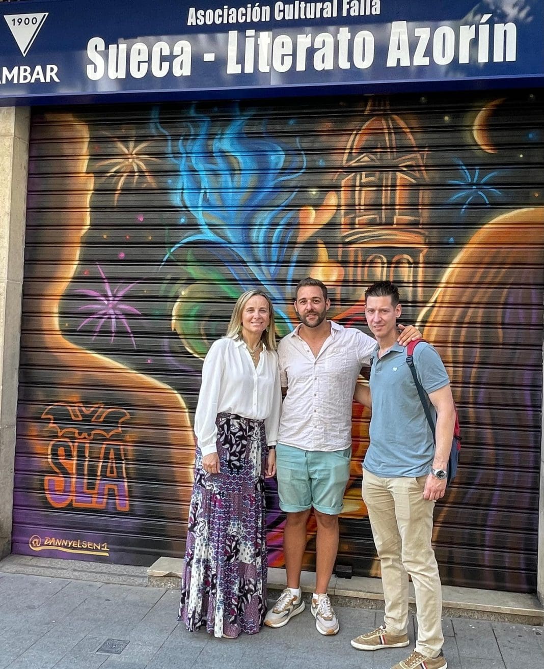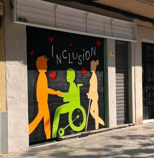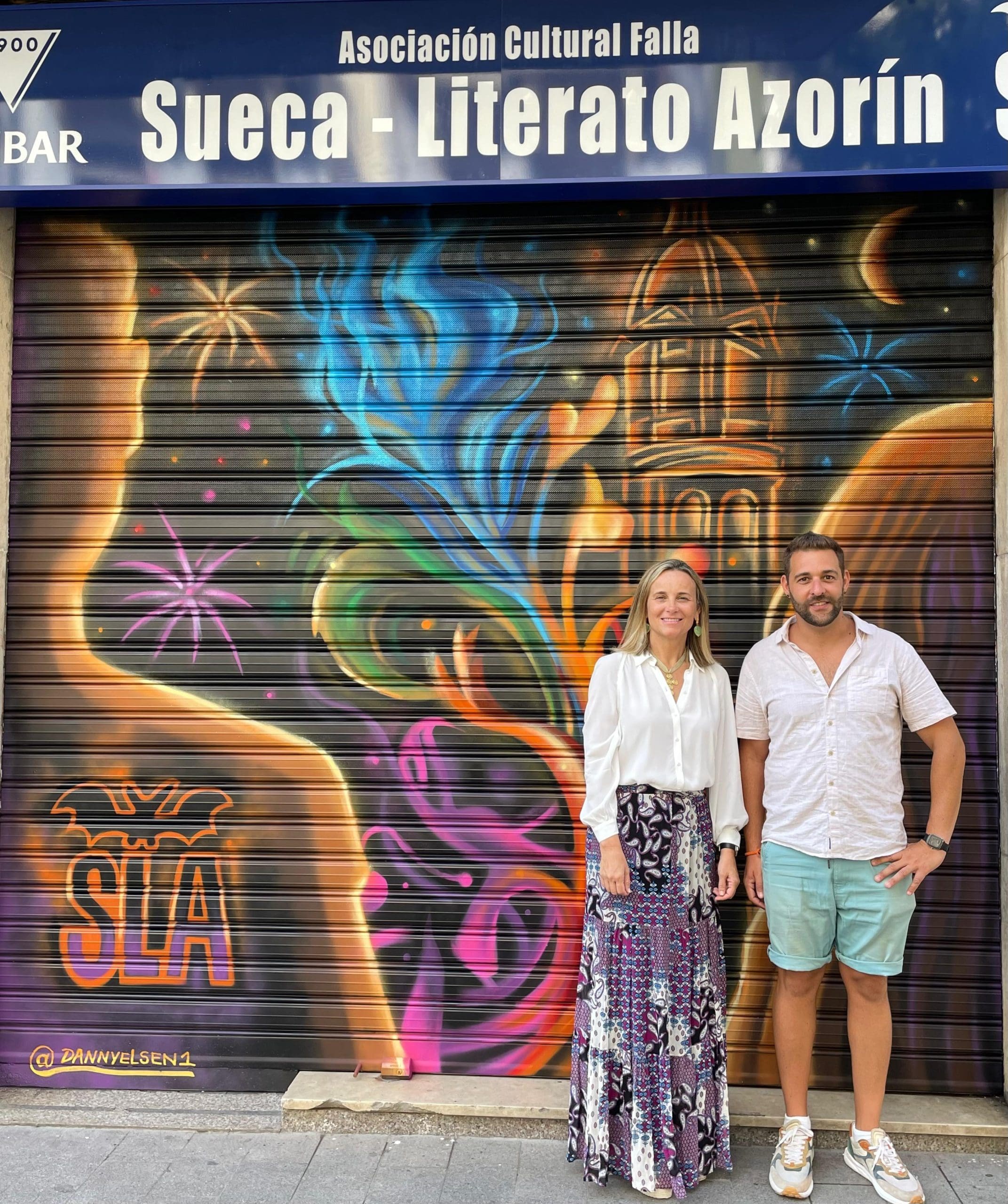 Paula Llobet, que ha estado con el artista Daniel González, @dannylsen1, uno de los diez participantes de este II Concurso de Arte Urbano, mientras realizaba su trabajo. Ha explicado que “con esta iniciativa se ha ayudado a comercios y asociaciones de todo tipo. Desde una barbería de Malilla, el Club de Ajedrez de Montolivet, restaurantes míticos de Russafa como El Rus, Ultramarinos Agustín Rico o La Torre de Utiel, fallas como Sueca-Literato Azorín o la Fundación AFIM, que ayuda a la formación e integración de personas con discapacidad. De hecho, en este caso concreto el artista les hizo un diseño ad hoc dedicado a la inclusión. Este gesto ha sido agradecido con una felicitación a la Junta por este concurso”.