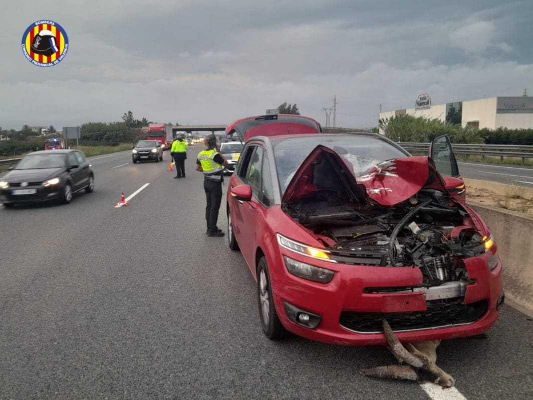 Dos personas han resultado heridas tras ser embestido su turismo por una cabra montesa en la A-7 en término de Alberic.