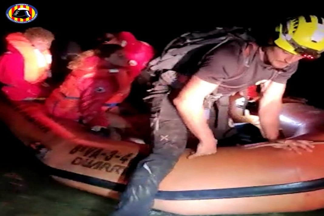 El Consorcio Provincial de Bomberos ha rescatado a tres personas en el pantano de Tous, que iban sin calzado, y que fueron sorprendidas por la tormenta y que no podían tocar tierra en el punto en el que estaban.