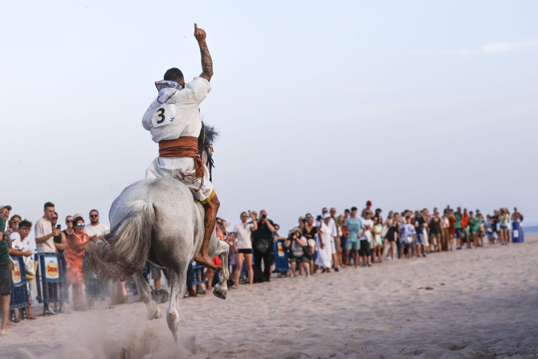 La playa de Pinedo, en València, ha acogido este martes la primera jornada de las tradicionales ‘Corregudes de Joies’, una fiesta de Interés Turístico Provincial, con más de 140 años de tradición, en la que jinetes y amazonas compiten en carreras de unos 700 metros sobre la arena de la playa.