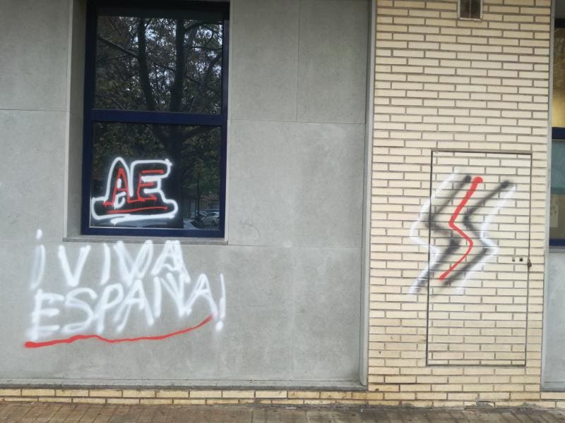 Pintades de caràcter ultradretà han aparegut aquest divendres en una de les oficines d’Estrangeria de València situades en el carrer Motilla del Palancar, en la qual s’ha dibuixat símbols nazis (SS) al costat del text «Visca Espanya» i «Vota a VOX».