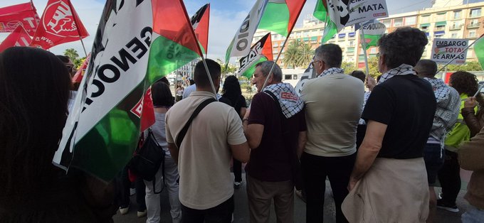 La jornada continúa con paros promovidos por CCOO y UGT en solidaridad con Palestina, y con una convocatoria de huelga general por parte de CGT, Solidaridad Obrera, la Alternativa Sindical de Clase, la Confederación Intersindical y el Sindicato de Estudiantes. El despliegue de actos se reparte a lo largo del día para mantener la presión y facilitar la asistencia de distintos colectivos.