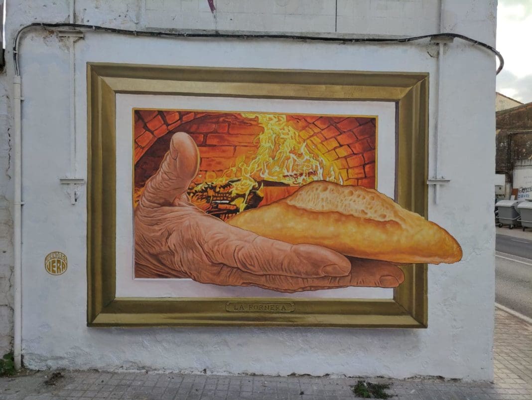 Cada uno de los diseños versa sobre elementos propios de cada población. En el caso de la creación realizada en les Cases de Bàrcena, se rinde homenaje al antiguo horno de la población, una instalación “de toda la vida”, en palabras del vecindario. En la imagen se ha dibujado la mano de la panadera, como símbolo y puesta en valor de este trabajo artesanal tradicional. Este mural ya se puede visitar en este pueblo.