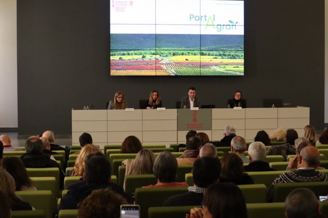 La consellera de Agricultura, Isaura Navarro, ha presentado el Portal Agrario de la Comunitat Valenciana y ha explicado que «se trata de una herramienta indispensable e innovadora pensada exclusivamente para el agricultor, para facilitar y convertir toda esa tradicional documentación y burocracia farragosa en un único punto de referencia donde encontrar toda la información, ayudas, trámites, novedades y resolver dudas».