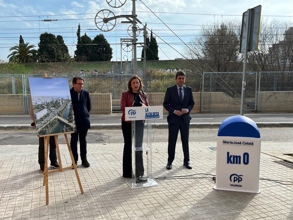 Desde el PP apuntan que tanto Compromís como el PSOE han renunciado a prolongar el paseo de la Alameda optando por una solución provisional que será un muro y acabará siendo definitiva “no podemos permitir que la ciudad quede con esta cicatriz”, ha afirmado Catalá. En la propuesta de PP se contempla la prolongación de la Alameda y la avenida de Francia hacia el Mar, culminando en la plaza con el frente portuario, entorno a la vieja Estación del Grao.