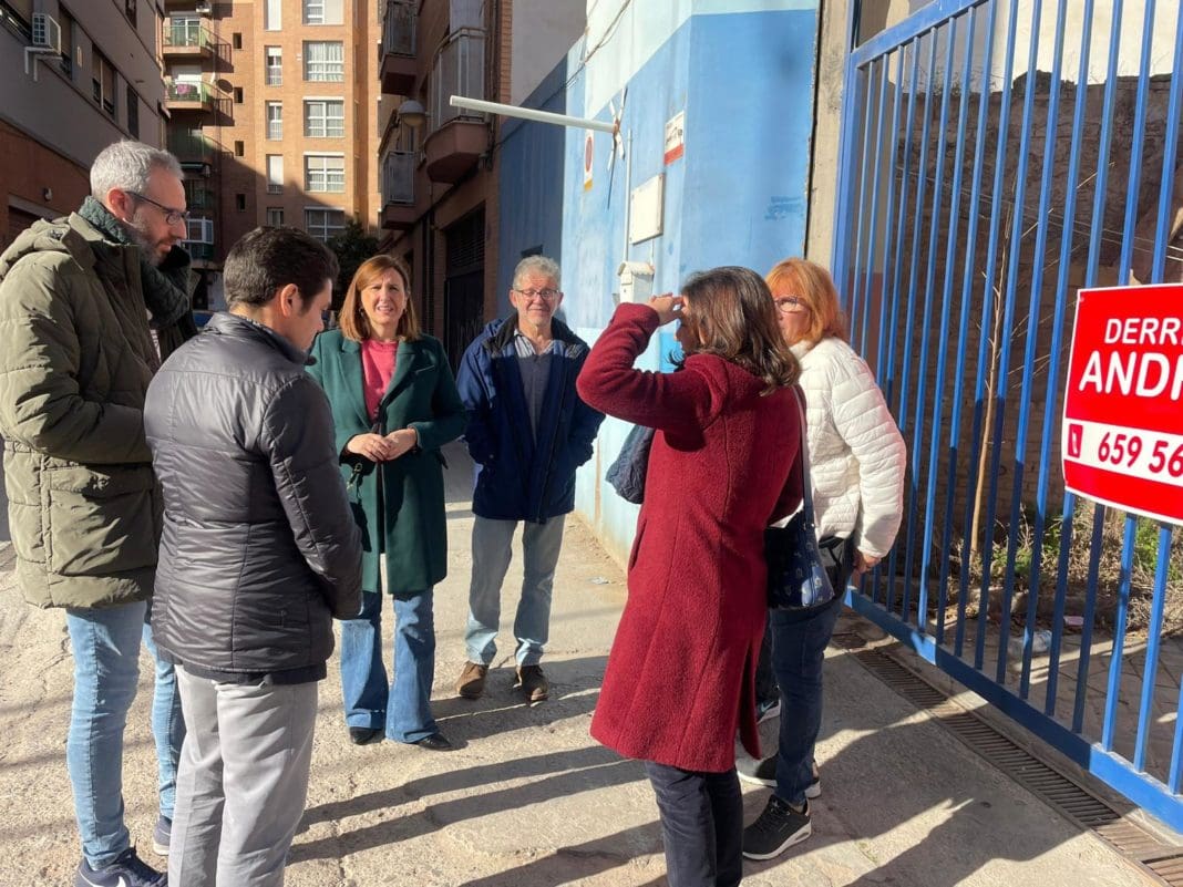 La portavoz del Partido Popular en el Ayuntamiento de Valencia, María José Catalá, y el concejal, Carlos Mundina, han visitado hoy las naves de la calle Guatla y se han reunido los vecinos de San Antonio-Zaidía después que ayer se iniciaron los primeros derrumbes de las naves.