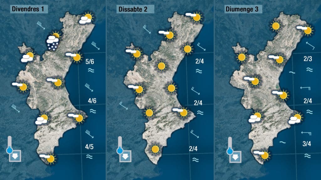 Puede ser que en la Comunitat Valenciana las temperaturas solo marcarán valores de invierno en el norte y por el interior o incluso podría verse pasar algún copo de nieve de la mano del mistral.