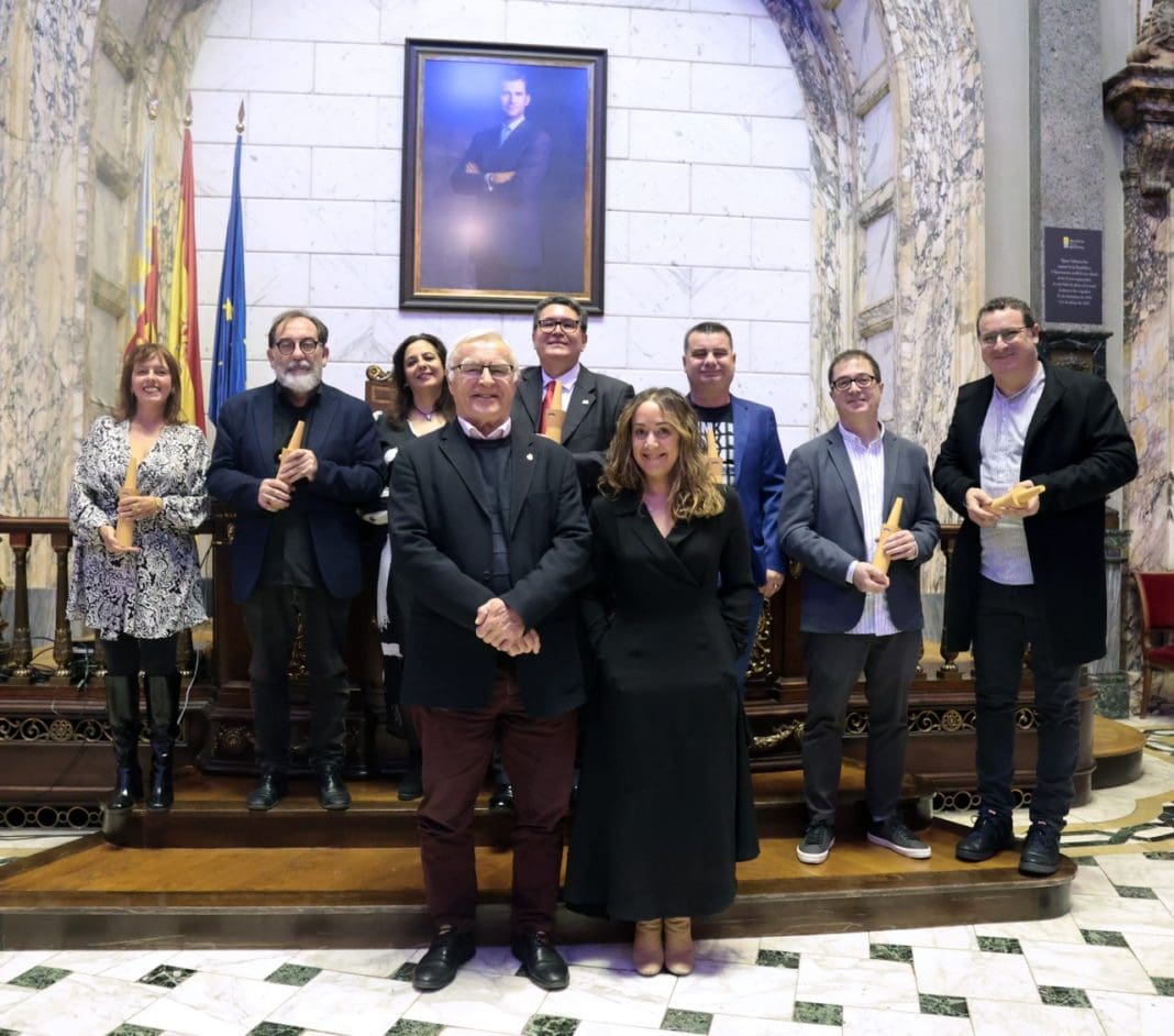 El alcalde, acompañado de la concejala de Patrimonio y Recursos Culturales, Glòria Tello, así como de varios concejales y concejalas de la Corporación, ha entregado esta mañana en el Hemiciclo los galardones a los poetas Josep Lluís Roig y Ramón Bascuñana, los novelistas Manel Hurtado y René Fuentes, la dramaturga Sònia Alejo y el escritor teatral Paco Zarzoso, y los ensayistas Lourdes Toledo y Martín Rodríguez-Gaona.