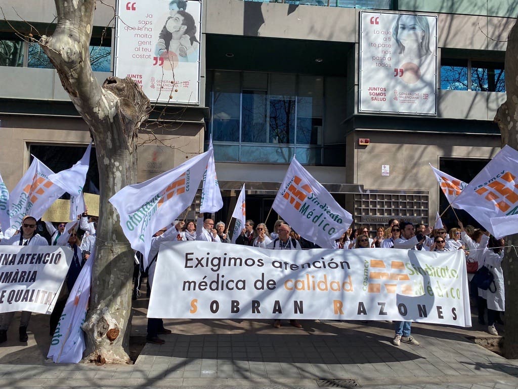 El sindicato de los médicos y médicas de la Comunitat Valenciana (CESMCV) ha convocado para este lunes paros y concentraciones con el objetivo de “evidenciar la situación de los médicos” en la Comunitat. Tras no alcanzar un acuerdo con la conselleria de Sanitat, a excepción del resto de sindicatos, CESM ha seguido con los paros previstos para exigir mejoras laborales para el personal médico.