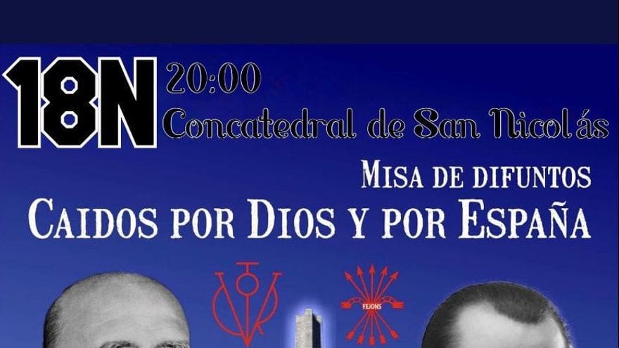 La Concatedral de San Nicolás de Alicante oficiará una misa de difuntos por los «caídos por Dios y por España» muy polémica. La misa se está promocionando con un cartel en el que aparece Francisco Franco.