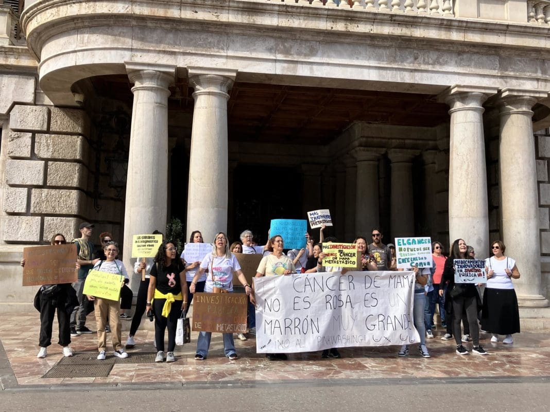 Supervivientes y mujeres con cáncer se han concentrado este sábado en València para mostrarse en contra del ‘pinkwashing’ y han añadido que empresas y grandes multinacionales «se tiñen de rosa» cuando se acerca el día del Cáncer de Mama. Por ello, les han instado a «dejar de comercializar con cualquier enfermedad, ya no solo el cáncer».