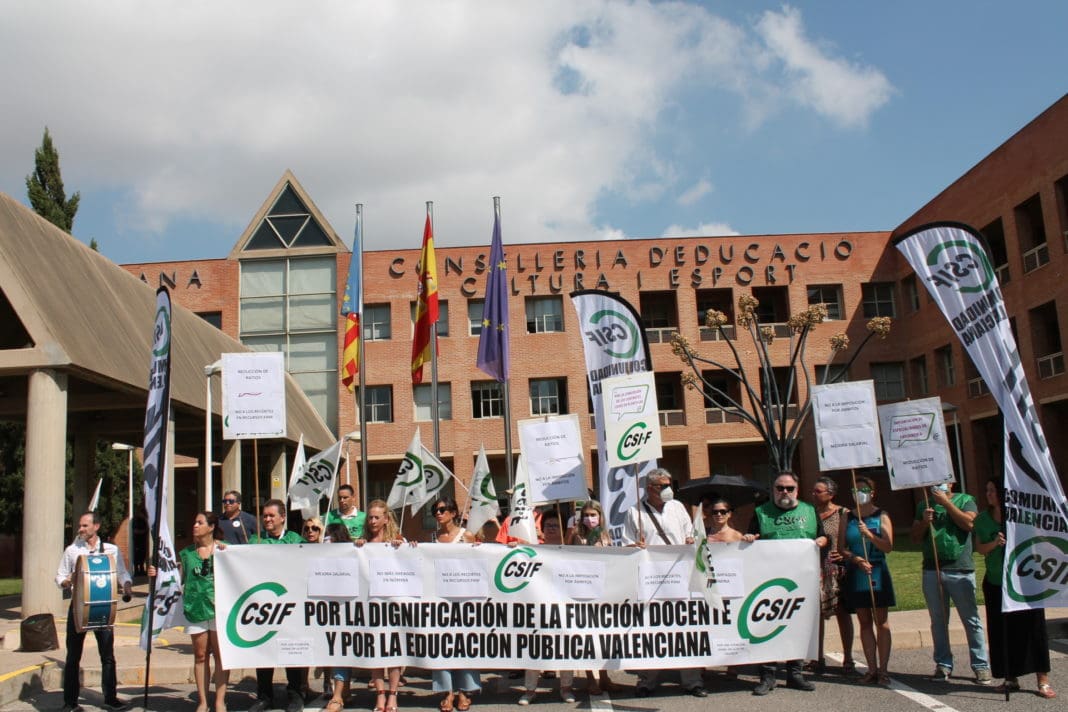 El sindicato CSIF ha llevado a cabo hoy un acto de protesta ante Conselleria de Educación para exigir una mejor atención en las direcciones territoriales al personal docente, el fin de los recortes y más negociación en lugar de imposiciones. La central sindical reclama una “apuesta decidida por una educación pública de calidad”.
