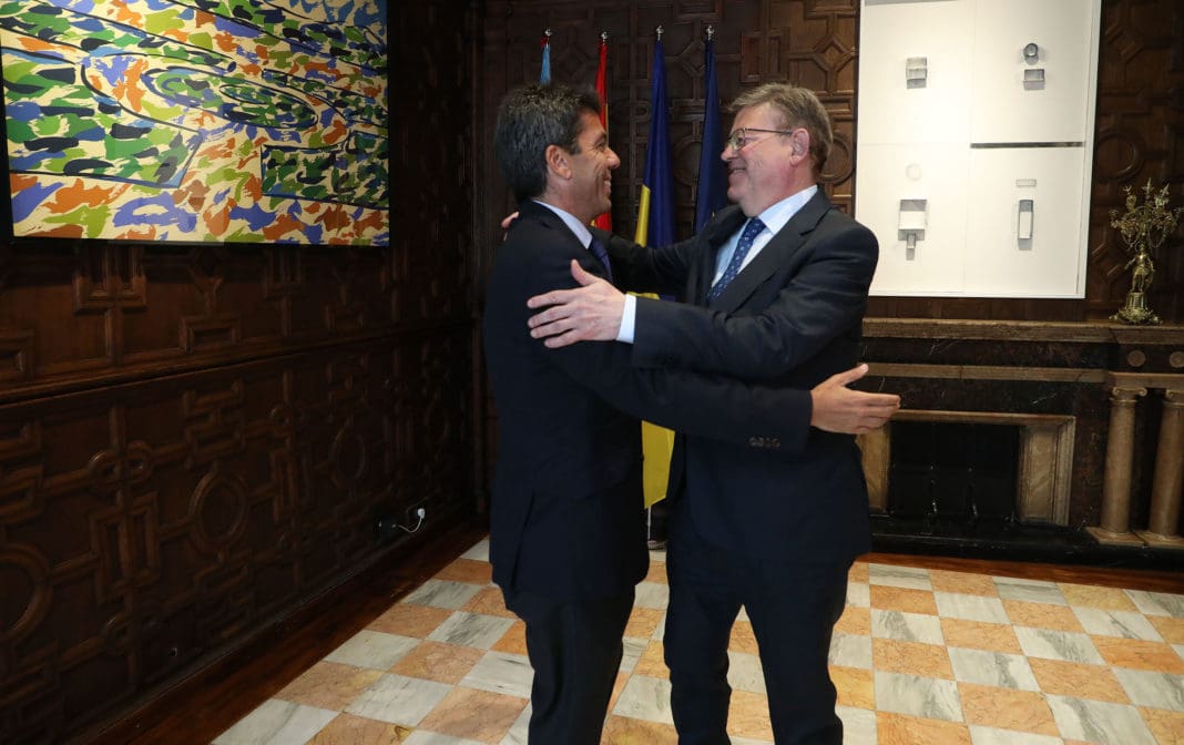 El ‘president’ de la Generalitat en funciones, Ximo Puig, ha mantenido este martes una reunión de trabajo con el líder del PPCV y futuro jefe del Consell, Carlos Mazón, el primer encuentro entre ambos dirigentes tras las elecciones del pasado 28 de mayo que dieron la victoria al barón popular. Una cita que no constaba ni en la agenda de Puig ni en la de Mazón para este martes y que se ha hecho pública una vez ha concluido.
