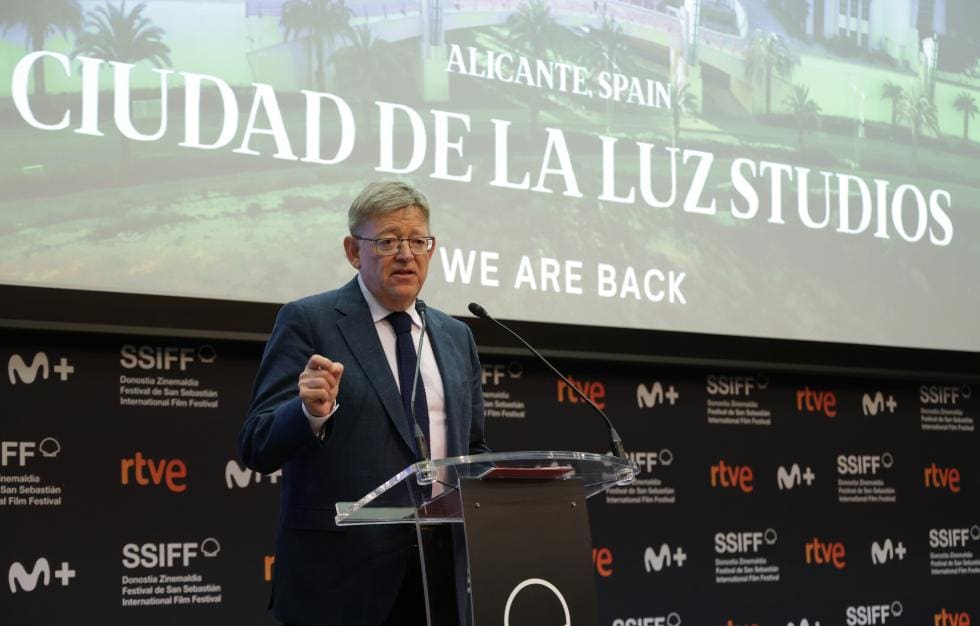 El president de la Generalitat, Ximo Puig, ha ofrecido a la industria audiovisual y cinematográfica, en el marco del Festival Internacional de Cine de San Sebastián, los estudios de Ciudad de la Luz de Alicante como un espacio con las instalaciones de rodaje más modernas de Europa.