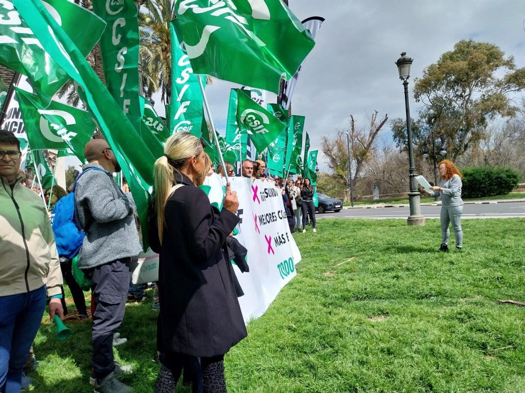 CSIF se han concentrado este viernes frente a la Delegación del Gobierno en Valencia para denunciar la pérdida de poder adquisitivo que las empleadas y empleados públicos han experimentado en los últimos años y exigir la negociación de un nuevo acuerdo salarial.