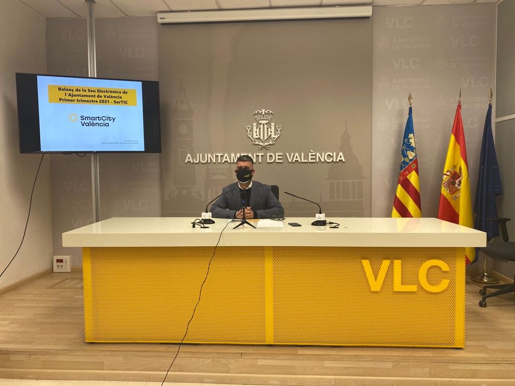 Mucho antes de la pandemia, en 2016, el Ayuntamiento de València comenzó a renovar su sistema electrónico para digitalizar gradualmente muchos de los trámites de la Administración que hasta entonces eran casi todos presenciales. Ahora, en 2021, la sede electrónica ha crecido tanto en usuarios, visitas, trámites realizados a través de internet, etc. que como consecuencia, las colas se han reducido considerablemente. Así lo ha explicado esta mañana Pere Fuset, concejal de Agenda Digital y Administración Electrónica.
