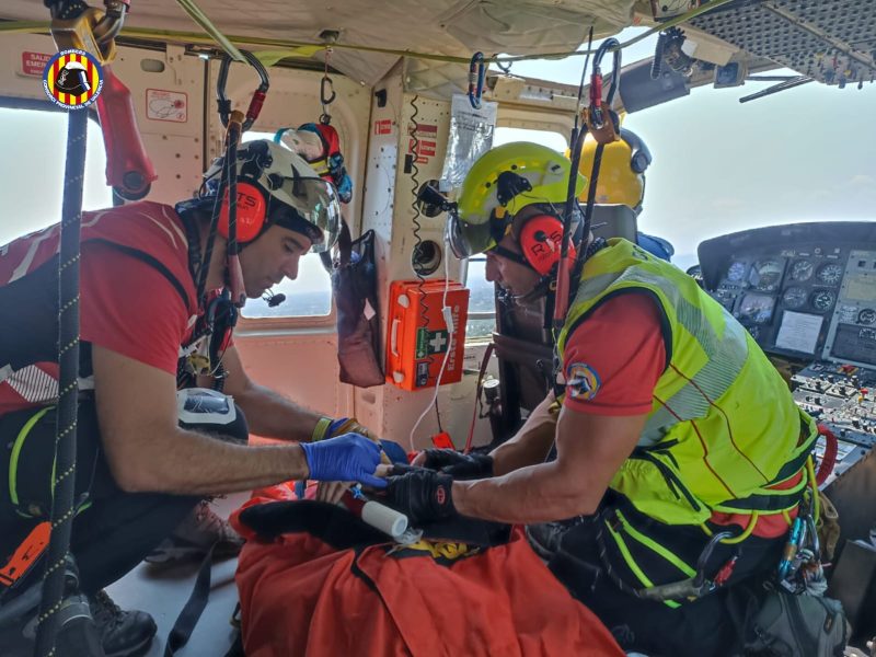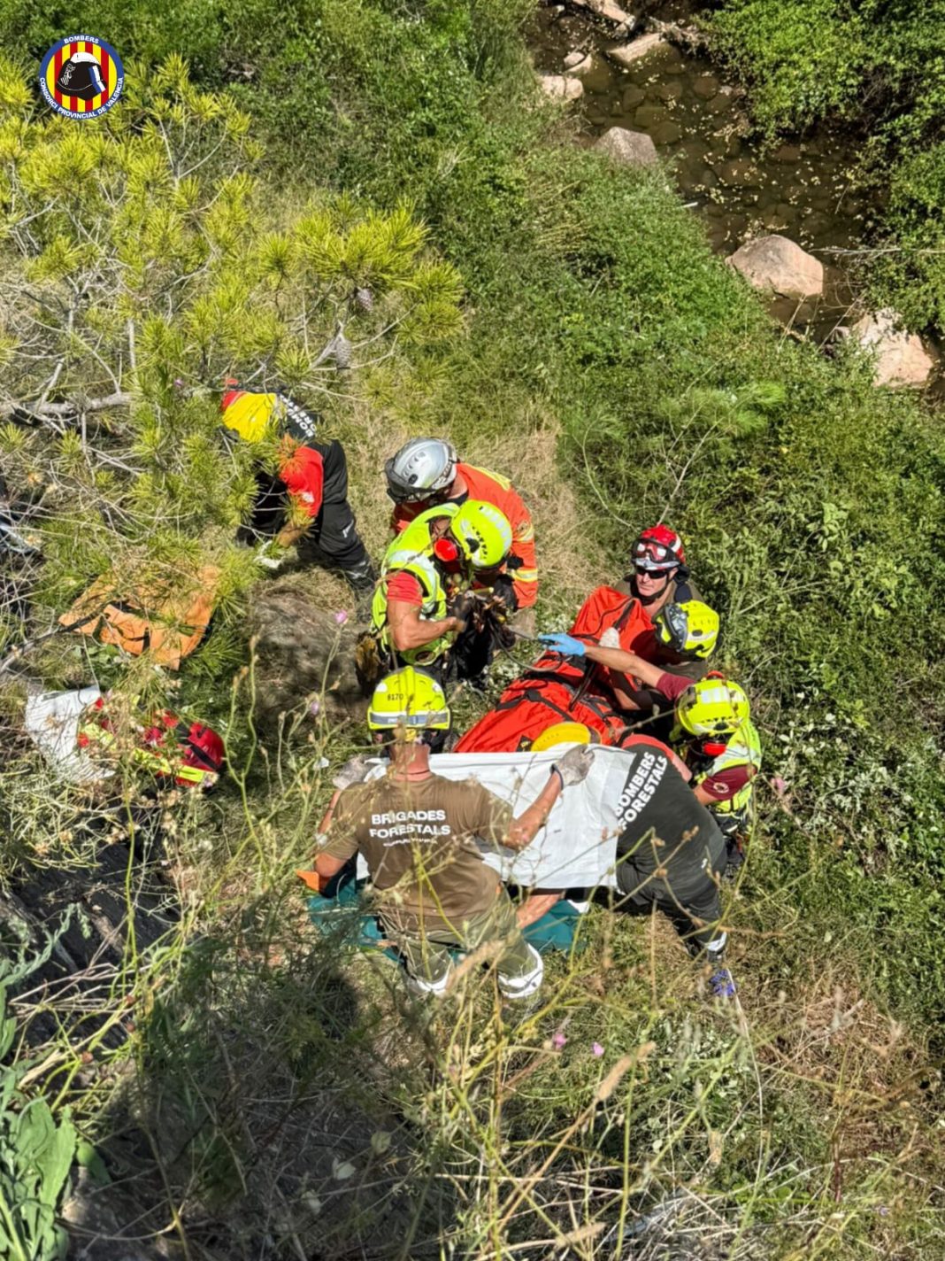 La víctima presentaba diversas lesiones en un pie y un hombro. Fue atendida en el lugar por el personal del helicóptero y, posteriormente, evacuada inmovilizada por vía aérea hasta el hospital de Llíria, donde quedó a cargo de los servicios sanitarios.