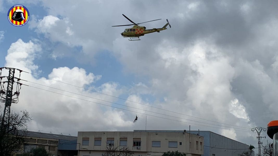 Hasta allí han acudido sargento de bomberos del parque de Paterna, bomberos de Catarroja, y grupo de rescate en altura GERA con helicóptero del Consorcio.