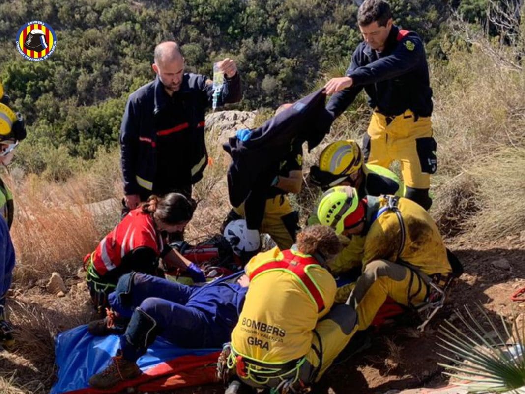 El aviso se ha recibido a las 10:14 h y hasta allí el Consorcio ha movilizado sargento de Alzira, grupo de rescate en altura, GERA, con helicóptero V-990 del Consorcio con médico y una unidad de bomberos forestales de GVA.