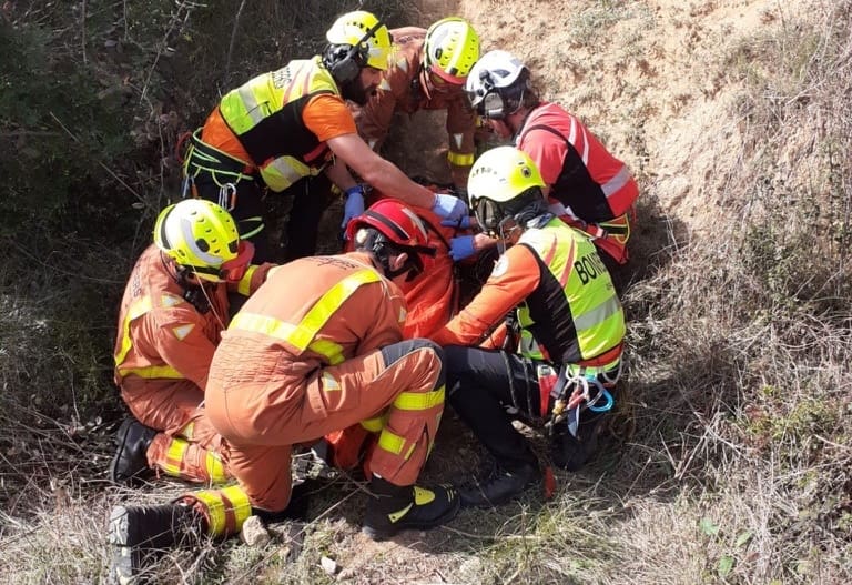 Efectivos del Consorcio Provincial de Bomberos de València han rescatado esta mañana a una mujer de unos 65 años, que según las primeras pesquisas había sufrido una caída en el barranco de Corchitelles en Turís.
