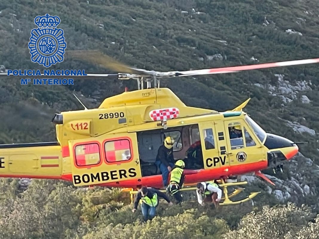 Agentes de Policía Nacional, junto a Bomberos, han participado en el rescate de un joven montañero que se encontraba herido en la cima del Mondúver.