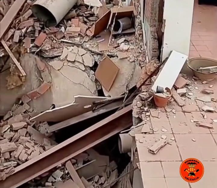 Una mujer fue rescatada este lunes por los bomberos después de quedar bloqueada en la terraza de la primera planta durante el derrumbe parcial de un edificio de dos alturas en la pedanía de Massarrojos. La caída de parte de la estructura en la zona trasera dejó sin salida segura a la propietaria, que quedó a la intemperie mientras el interior del inmueble presentaba daños que impedían usar las vías habituales de evacuación.