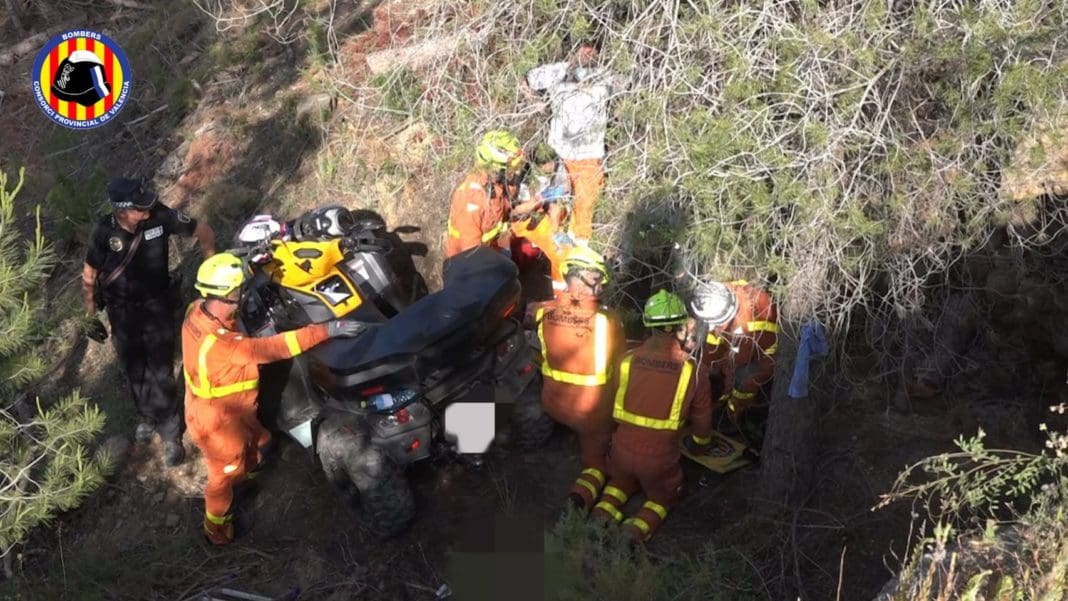 Los bomberos de Silla y sargento de Torrent se han movilizado esta tarde al rescate de una pareja, un hombre y una mujer, que ha sufrido un accidente de quad, cayendo por un desnivel de unos cinco metros. Todo ha pasado a las 17:11 h, cerca del Camino de la Font de Telilles de Picassent, cuando el vehículo se ha precipitado.