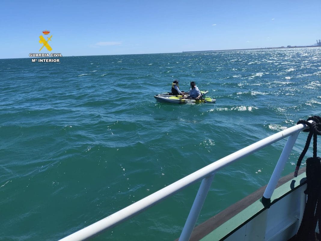 El Servicio Marítimo de la Guardia Civil rescata a dos personas que navegaban en dos kayaks por la zona de PortSaplaya y que, debido al viento y al fuerte oleaje, se habían alejado de la orilla.
