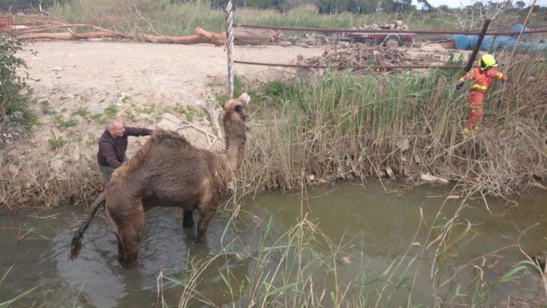 Efectius de bombers han rescatat a un dromedari que havia caigut en una séquia en la localitat valenciana d’Alfafar.