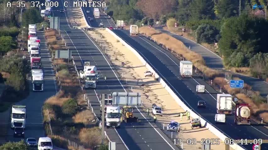 Según las mismas fuentes, en la cola de retención se ha producido un alcance entre otros dos camiones, en el que ha resultado herido uno de los conductores.