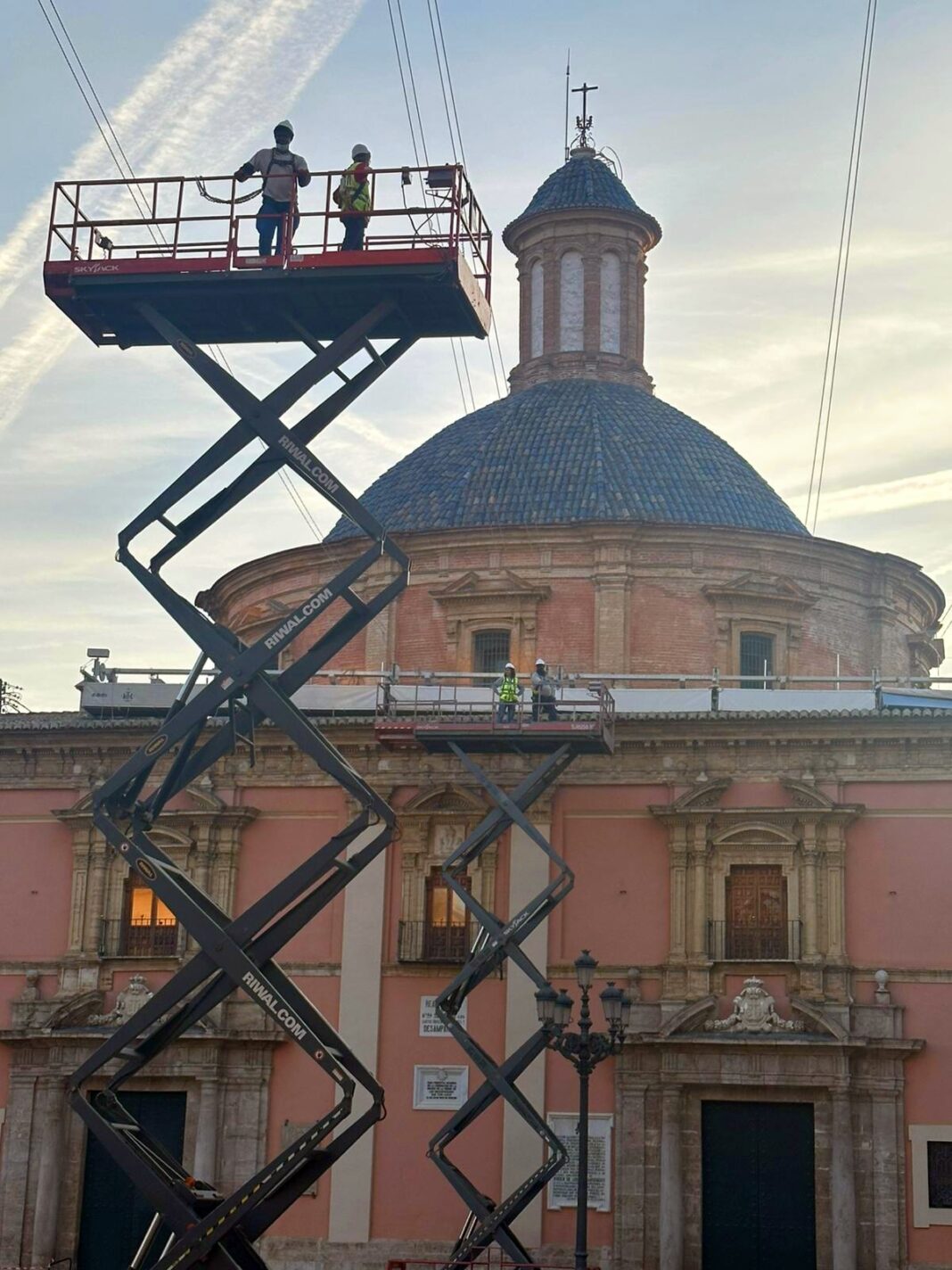 Los trabajos han comenzado este miércoles. Además, se desarrollan con medidas de seguridad y respeto al patrimonio, al tratarse de una actuación destinada precisamente a proteger la Real Basílica de Nuestra Señora de los Desamparados. Esta basílica está declarada Bien de Interés Cultural (BIC) con categoría de Monumento.