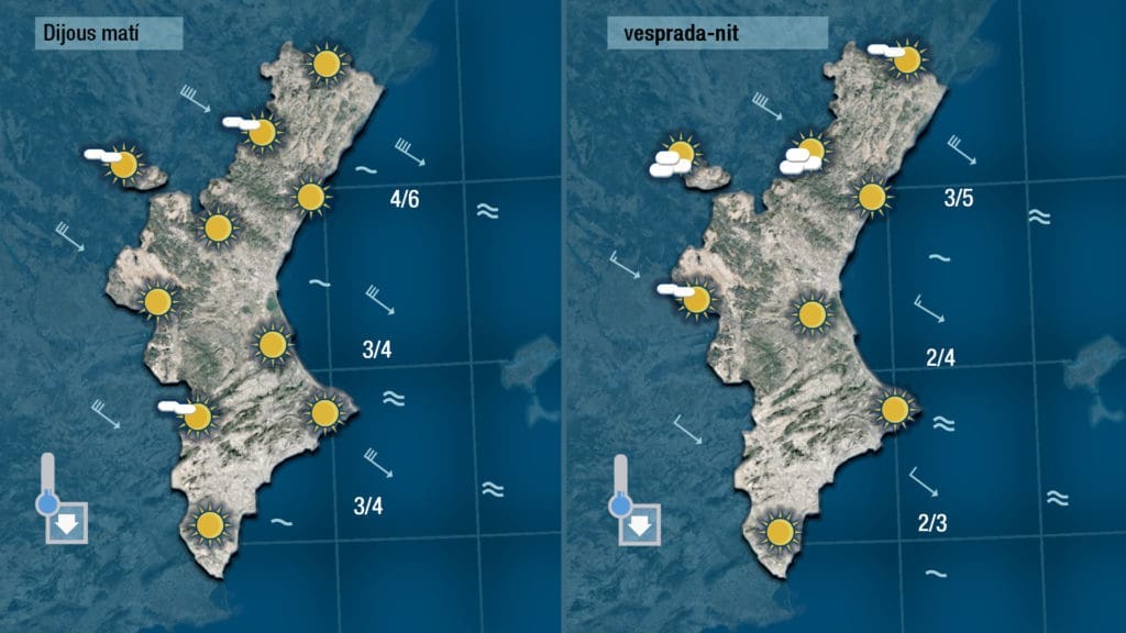 En el centro del día las temperaturas también se mantendrán muy frescas a la costa y frías por el interior, y el viento de mistral que hasta la tarde se dejará sentir con fuerza en el norte se encargará de acentuar la sensación de frío.